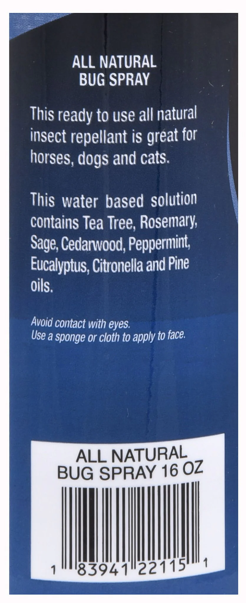 A proven remedy for an age old problem! Natural Bug Spray features safe, non-sticky organic extracts that work on horses, dogs and you! It's safe to wipe on faces and because there are no pesticides, you can re-apply even on udders without concern. Discourage more than flies - mosquitoes, chiggers, gnats and other annoying insects stay away.